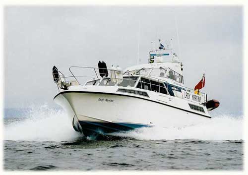 Navigation Aids and Instrumentation: Echo depth sounders plus Interphase Probe Forward Sonar, Raymarine RayNAv500 GPS 'plotter' and Autopilot, MLR FX-312 GPS 'plotter, MLR SP24XC handheld GPS, Yeoman Navigator Pro Plotter; Dedicated Vasari Technology MF4300 solid state fanless fixed computer operating alternatively MaxSea Time Zero software and Meridian Chartware SeaTrak software connected to 15" high visibility Bridge Monitor Screen and bulkhead mouse; Twin Foruno 1900 Marine radar displays, Windmaster Ultrasonic Wind Vane,