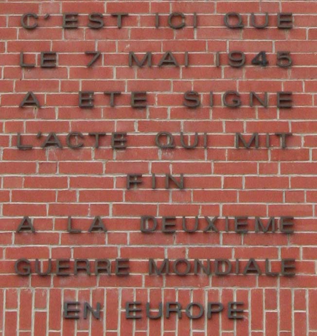 Reims' role in the second great conflict of the 20th century was defined by its choice as Eisenhower's central headquarters in the later stages, and the place where the first capitulation was signed on the 7th May 1945. A school room of the Lycee Roosevelt, as it is now called, was used as the Supreme Headquarters of the Allied Expeditionary Force, and the map room where the unconditional surrender was signed has been preserved as it was at that time.