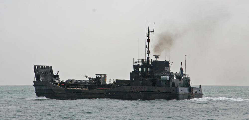 Taking the same channel in the other direction we crossed paths with an army landing craft, possibly late for the last war, or early for the next one. The pilot boat which accompanied it made sure we gave them a wide berth by heading straight for us until we changed course.