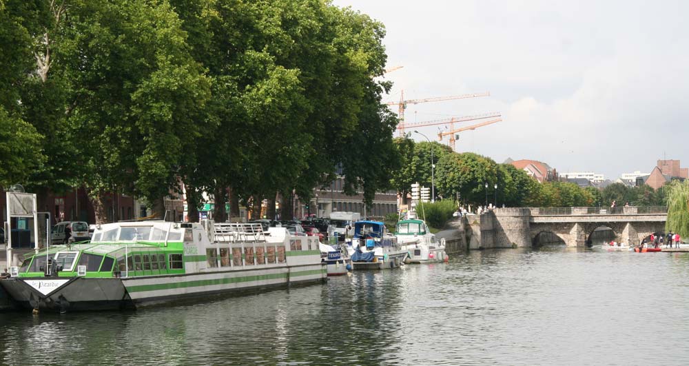 Our destination for the day was Amiens, regional capital of Picardie, which has good mooring facilities close to the town centre. Whilst the moorings were provided free, the water and electricity were dispensed by a complex electrical token system, in which you bought six units at the tourist office, which could each be 3 hours of electricity, or 200 litres of water. There were only a handful of boats at the Pont Amont of which we were surprised to find two were Brooms, one of whom we had met before in Limehouse. David and Jill on Summer Celebration were on their way upstream so it was useful to compare notes of our respective voyages. We were even more surprised the next day when a fourth Broom, Samphire, turned up.