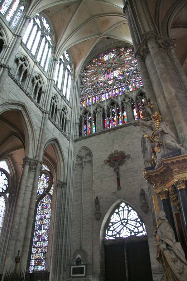 Arriving from upstream at Amiens, we were able to catch a glimpse from the river of the 'hortillonages'. Accessible only by small boat, this network of market and ornamental gardens covers 300 hectares. Traditional horn-shaped boats tour the area but with wet weather dogging our stay in the city an opportunity for a visit did not present itself. A more popular visit in the steady rain was the interior of the 12th century cathedral. Covering an area of 7,700 square metres, it is the largest in France, although the upkeep of the interior struggled to match the grand scale. Each evening the exterior of the cathedral is brought to life with a 'son & lumiere' performance, depicting the statuary of the facade in vivid colours. The colours transform the stone figures into human characters, who tell the story of the town in the context of its religious history.