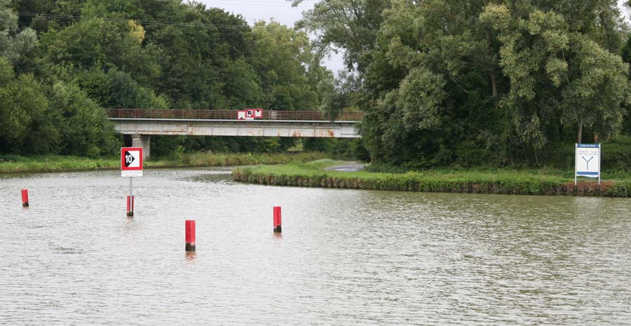 We were beginning to wonder if we had made the right decision, but at the next lock we were greeted by the local waterways agent, and presented with an impressive set of detailed coloured charts for the rest of the canal, all printed on waterproof card, and showing every facility and navigational detail of interest. We were promised 1.2m depth for the rest of the waterway, and were relieved that we were not asked to sign the disclaimer of responsibility for the lack of greater depth. A diligent team of lock/bridge operators followed us along the waterway and we were impressed by their attention to waterborne tourism, given that no license fee is payable for cruising this waterway.