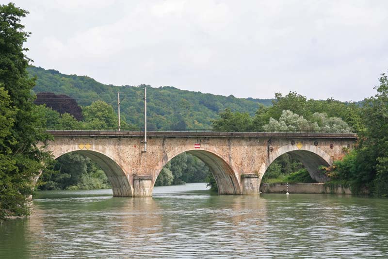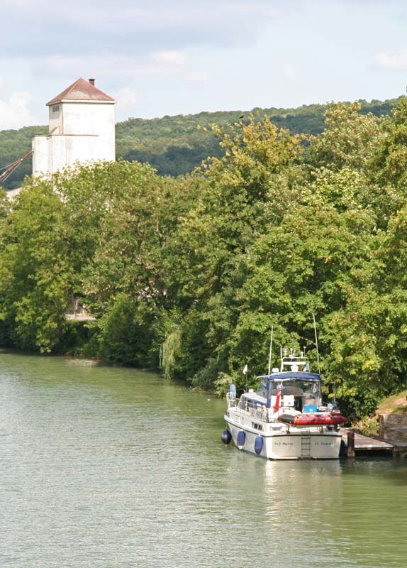 After a lay day in La Ferté sous Jouarre we were ready to continue on, and although the day was overcast we decided to risk the rain and be on our way. It would be another day without the canopy, as we expected bridges which would need the mast down, so we would be at the whim of sun or showers. As it turned out the weather was kind, but the minimum bridge height was 5.3m so we could have left the canopy up after all. This stretch of the river includes the start of the automated locks, and we found little competition from barges or other boats.