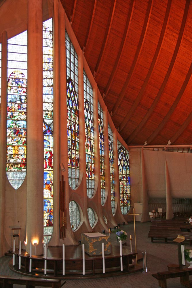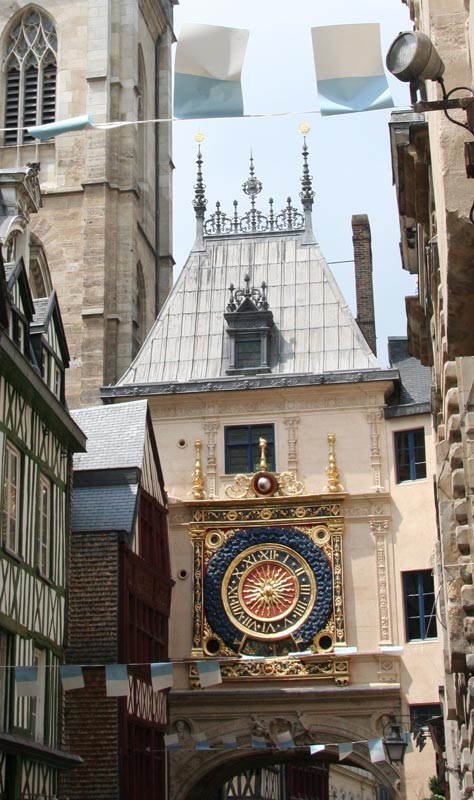 Instead we had time for a cycle ride round the centre of Rouen, stopping at the Gros Horloge and the Eglise de Jeanne d'Arc. Built on the spot where the 19-year old Joan was burnt at the stake by the English, the church's curved timber roof gives it a nautical flavour, whilst the 16th century stained glass windows were recovered from another church destroyed in 1944.