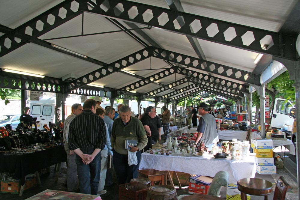 The road next to the pontoon leads to a popular jogging path, and on Sunday morning there was a steady stream of people font du jogging - the path leads all the way to the old locks of Carrières-sous-Poissy, now closed to navigation. Opposite the moorings the Ile de Nancy is laid out as a riverside park and a regular foot ferry crosses the Bras d'Andresy to take visitors across. For the market lovers amongst the crew, every third Sunday of the month an Antiques and Collectors market is held under the covered market on the quay, and our visit coincided with one of the regular outings for some treasured collections of old postcards, 45s and assorted silverware.