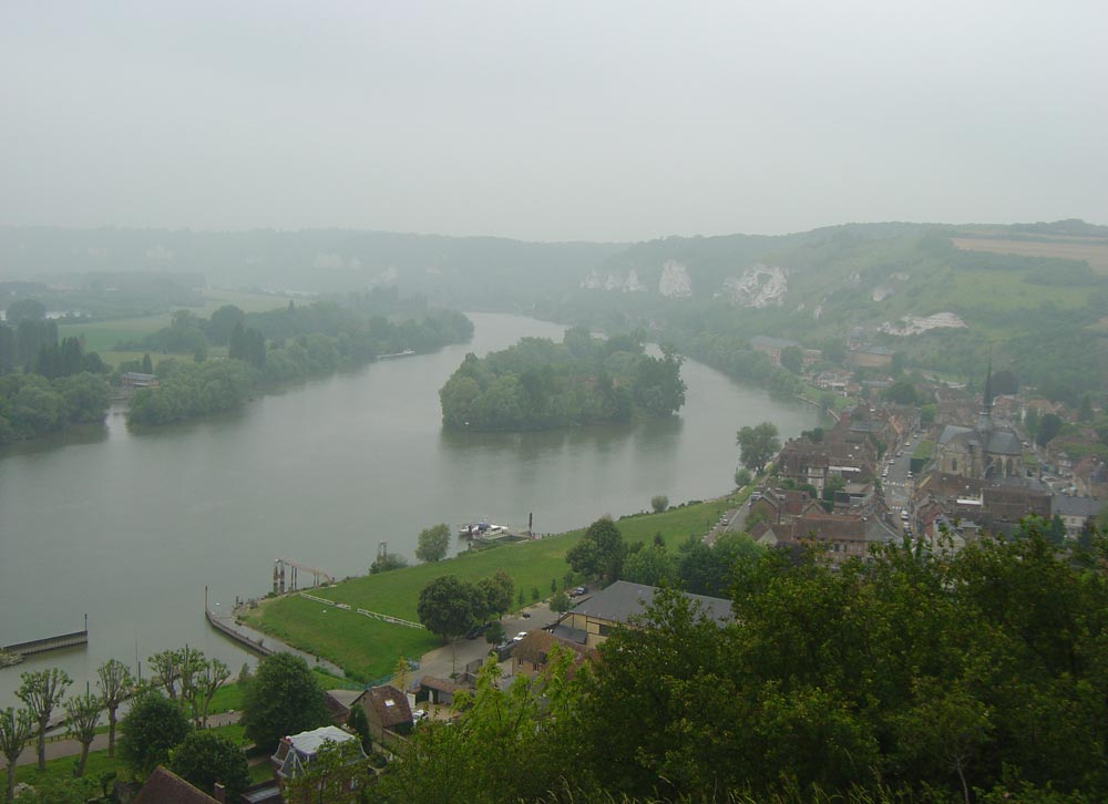 A good selection of shops and restaurants are close at hand to the moorings in Petit Andelys by the Seine, whilst a mile away is Grand Andelys where the real people live. The main attraction in these parts though is Chateau Gaillard which overlooks the river from its clifftop position, and we made the steep walk up to the observation plateau. On a clear day you can see for miles, but unfortunately, it wasn't...