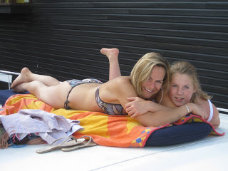 The sunnier spells created the odd bikini opportunity but this August summer month has been a mixture of cool breezes and showers and we were lucky to get some warm sun before the inevitable rain arrived.With the covers up, we cruised back in good spirits despite the unfortunate acquisition of some unwelcome substances, which were a product of a short shore excursion. Once the source of the unfortunate smell had been tracked down, the combination of a bucket of river water and the convenience of "gel" sandals soon remedied that whilst we were underway!I did not think that my guests noticed too much that I was making way slowly to time our arrival back at Ropes Hill Dyke to coincide with the return of the warm sun.Later on, as the weather cleared again, the most successful fishing was to be had right off my own moorings and a succession of roach sacrificed themselves to Harriet's rod and float-fished midwater maggots as a fitting climax to the sporting side of the day. It was my task to act as fishing coach as a nice barbeque and salad was prepared for us on the balcony courtesy of my honoured guest chef.