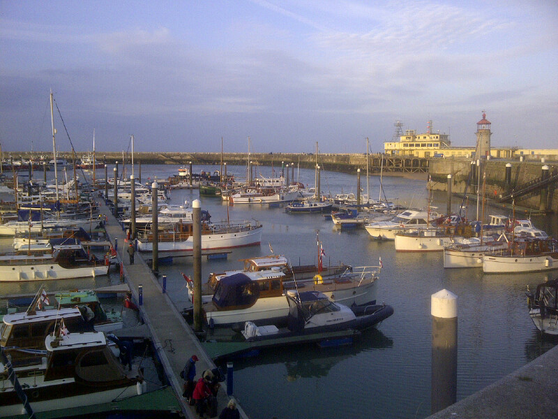 The open sea passage was some 80 miles and was itself planned to take around 9hrs, arriving at the Ramsgate harbour entrance at low tide turning to starboard to enter the Marina after steering carefully along the buoyed channel until entering. Then and hugging the pontoons on the port side as parts of the marina are drying two hours before lower water on a near Spring tide. Since i was last here, the ferry terminal has become disused and the place looked very sorry for itself!