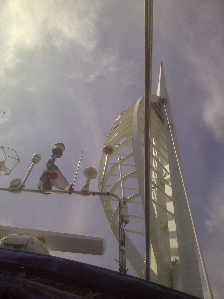 This was essentially a very short cruise from Gun Wharf Quays for we had left Haslar, Portsmouth (Gosport) the day before and moored in this much more central location; close to the major shopping outlet complex and at the centre of the tourist trade. We had intended to put into Gunwharf the day before that but they had failed to read our VHF signals on 80 and it transpired that they only use hand-held sets, and work until 5.30pm weekdays, which could explain it. Also being the other side of the main channel from the small boat route, prior consent was needed from Portsmouth QHM (Queen's Harbour Master) to cross and you have to call from the Ballast Pile (beacon FlR.2.5s)