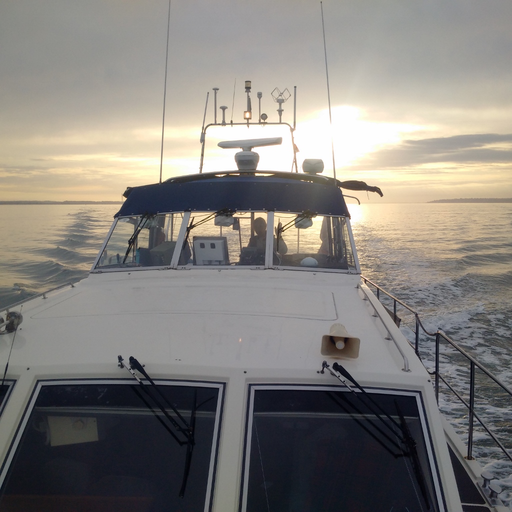 We had hoped to stay at Yarmouth the night before to lessen the journey but the moorings at both the Marina and local boatyard were all full due to them being very popular at summer weekends. The passage from Itchen, whilst long, used the tide well and, with the timing being chosen to take advantage of the weather being very still, the long 10 hour passage, starting at 4am in the morning local time, was still enjoyable. I had given my crew permission to sleep and she did a couple of times and thoroughly enjoyed the passage. Kathleen had prepared lots of drinks and food to pass the time on route. Sandwiches, snacks, fruit and biscuits with lots of flasks and drinks