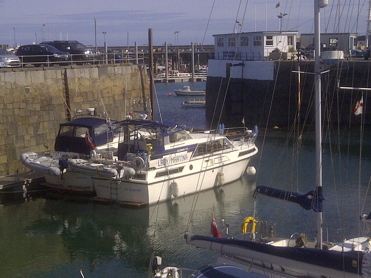 By adopting our optimum economical cruising speed of 8 knots, the tides are most favourable a while before LW St Peter Port so as to arrive in St Helier with the tides following. Unfortunately the exit window at St Peter Port Victoria Marina is only around 2hrs +_ HW (or a little more with care) and so that is not a solution. Fortunately, St Peters Port had installed excellent pontoons in the outer harbour which have water and shore access, if no electricity, and so we arranged to move from our inner berth to one of those the day before.