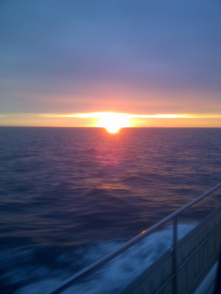 It was a rather scary start to the passage as it was pitch dark in the outer harbour and I had to use my searchlight to see the harbour piers and to find our way out. Then we had a particular concern to avoid any crab pot markers and so were relieved when 'nautical twilight' (horizon viewable) was replaced by normal twilight and then when the sun rose and we could see fully and increase speed towards our destination with safety. It was my crew's first experience of navigating in the dark and she did find it rather stressful but I was confident with the radar and the calmness of conditions.