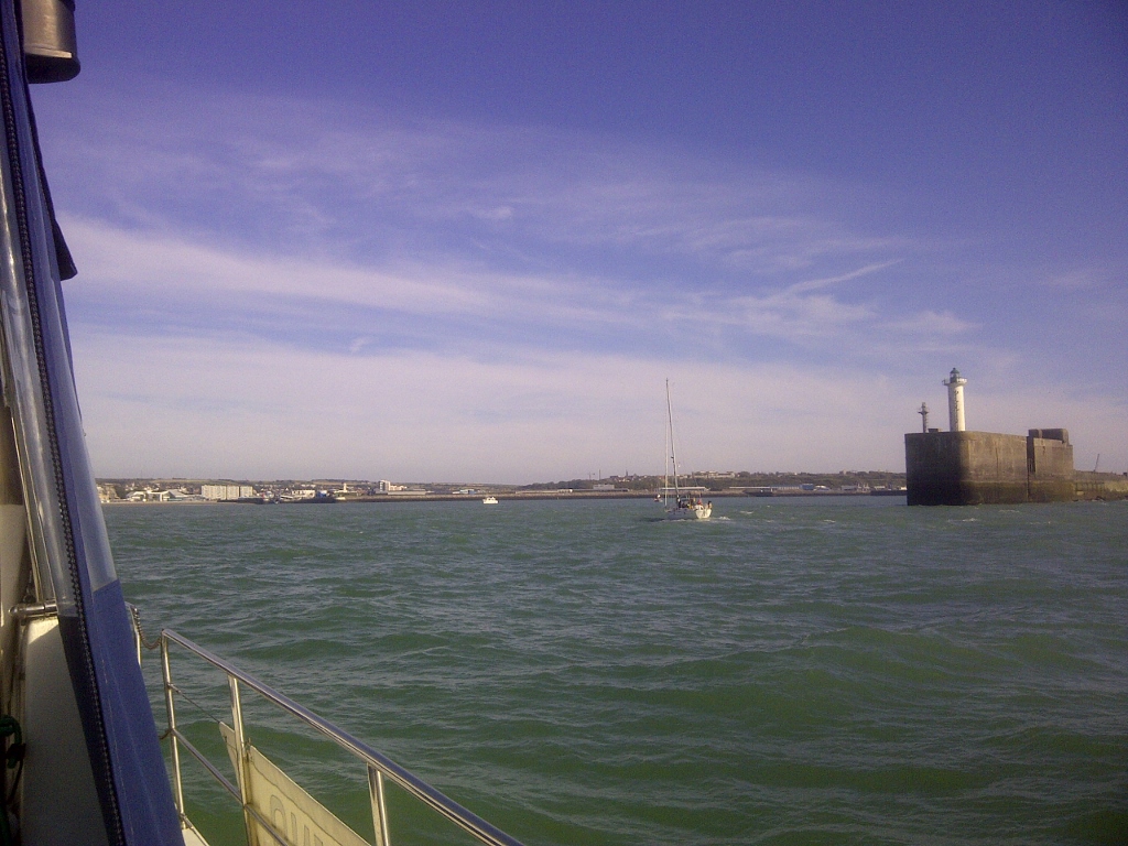 The weather is forecast was good and so it turned out to be. It was very benign off of Boulogne at just 3-5kn from the S and then rose to only 5-6kn as we cruised across the shipping lanes and then north past Dover to Ramsgate, with the southerly wind following the tide and making the best of conditions . In the event, the breeze was variable from the NNW and ending up in the SE. The sea was predicted be smooth/slight and it was actually calm for much of the time and only got up a bit when we were passing between the shallows and along the Ramsgate channel