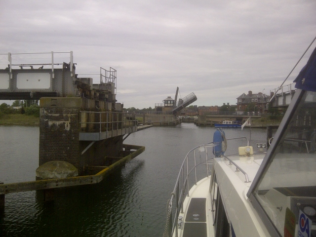 Our target was the 9.45am LT raising of the Lowestoft Bascule bridge which would precede a Mutford lock booking that I had made for half an hour later. There was ‘rain in the air’ but it never really rained hard and so I was able to accomplish this and set off for the bridge afterwards without too much discomfort. The lock proved to be a little testing and that was not what I had expected at all. We were locked thorough in company with a sailing yacht and they only seemed to be using half of the lock to start with and the poor yacht had its stays tangling on our RIB as we were getting sorted out. This happened again as I prepared to leave as there was an unexpected tidle surge when the levels were established, making me think that the keepers had opened both gates or something. We slewed sideways, they gyrated about tangled but luckily no damage seemed to have ensued and so we carried on across Oulton Broad and along Oulton Dyke afterwards.