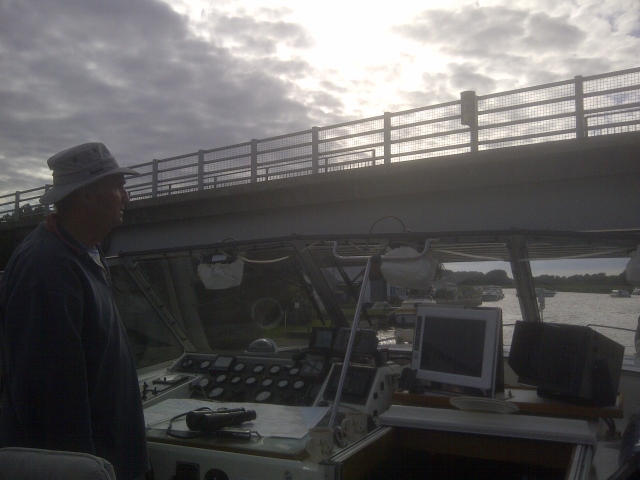 Eventually to Somerleyton Bridge who thankfully answered VHF Ch12 and gave us details of when to arrive and so I judged our passage well and arrived just on time at 10.25LT. Then some time moored and entertaining Maggie and Chris from Ikon after which I had called ahead to my old colleagues at the Yarmouth Yacht Station and their estimate of 15:51 LT was a little after mine of 15:39 LT and then we only just made their time of 15:51 by the time we arrived at the Bure Bridges.