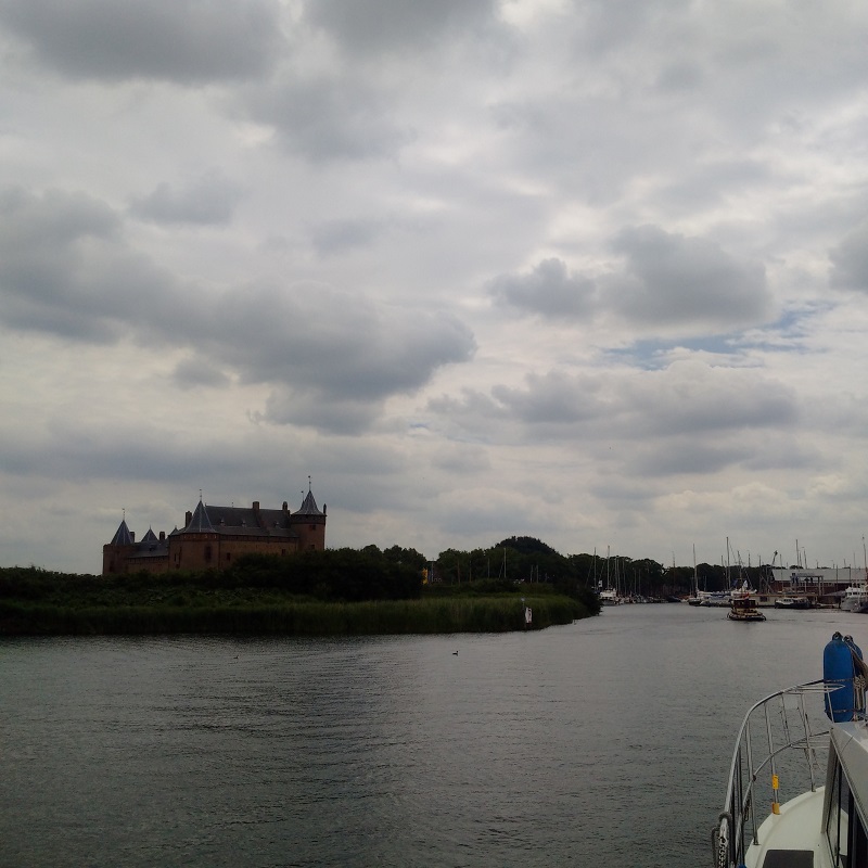 Today we picked up Kathleen's neice and her boyfriend, Sarah and Navin, in Amsterdam before cruising with them to Muiden, a short distance away on the Markermeer. I had reviewed the current and expected weather and made a decision about our passage plans. We would cast off from Amsterdam Marina and cruise the shorter of the two optional passages through the Orangesluis and short way across the Markermeer to Muiden. The alternative would have been to go further north and around the island of Marken to re-visit that charming island again but that would be three times as long and more exposed for today and coming back the next day