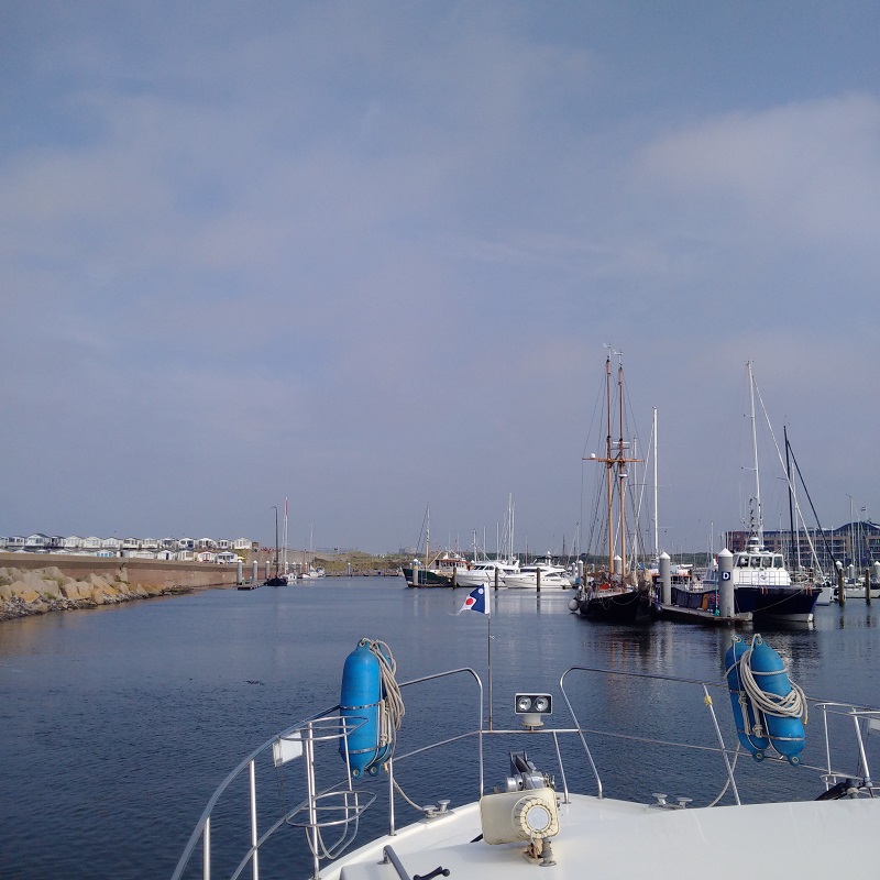 We all coped well with that, but I then became aware that Ines had previously suffered from travel sickness as an air hostess and so she needed a little help and encouragement coping with the vessel movements, which were yawing a little. I kept her busy and focused on the horizon and she survived without being sick or feeling too bad and both her and Kathleen had periods of sleep below as the very long and somewhat tedious eleven to twelve hour voyage took place. However, at sea, boring is good for it means no problems, danger or inconvenience and so we relentlessly made our way across the North Sea until we spotted the Norfolk coast and approached Lowestoft harbour. As she is assisting Brooms with their marketing plans on the 'Continent', Innes was pleased to be brought across conveniently and accommodated but, additionally, it was her first sea experience having previously, like so many Dutch sailors, only cruised on the inland rivers and meres.