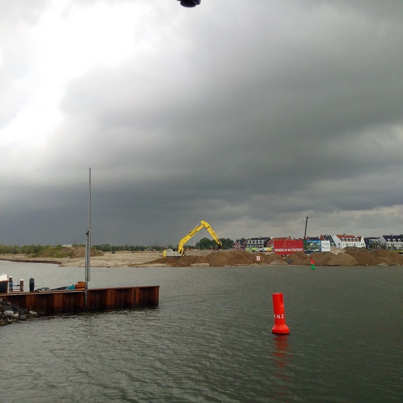 By this time, we were getting wind gusts of anything up to 29 knots but it was mostly on the bow and manageable. We managed the conditions until we got to Harderwijk where we arrived with 3-4 other motor cruisers all looking for moorings and competing with each other. There were very few to be found without rafting up, as the inner harbour, past the lifting bridge was blocked off and outside there was a horrendous amount of landscaping and building work taking place that had ruined the moorings. After some time reviewing the situation I turned Lady Martina in its own length and then headed back out across the north-east end of the Wolderwijd and around the Knarland Island.