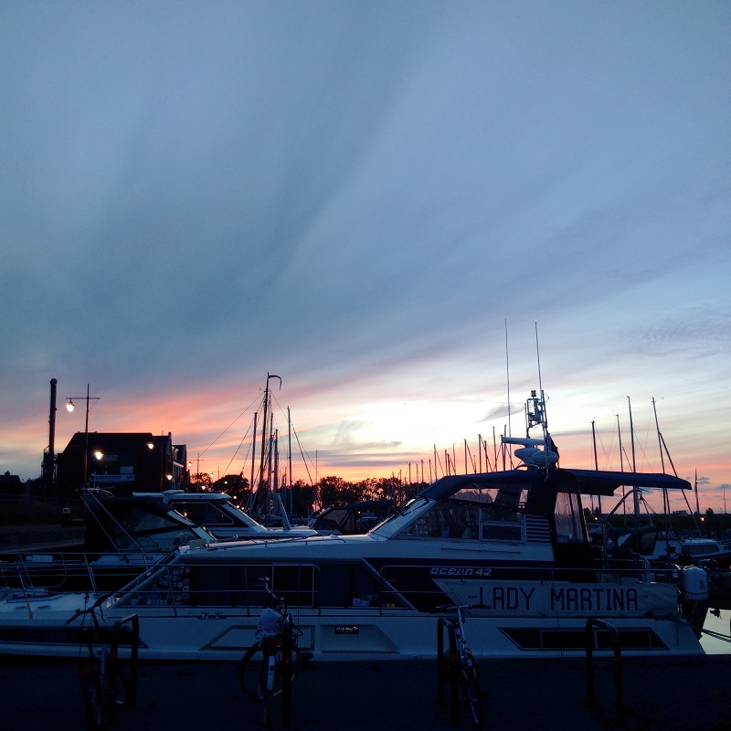 I investigated the inner harbour, which was just for traditional wooden botters and then settled for a mooring in the WSV de Eendrecht where at least we could get water and electricity by SEP card, even if their WiFi did not reach the end of the moorings and I had to log into KPN-fon, my regular fall-back. A relaxing afternoon in the sunshine eating, drinking and catching up with writing before an evening excursion. I was able to send a message to our Dutch friend Inez about where we had ended up and she will join us on board for the night tomorrow when we will cruise to Huizen the day after.