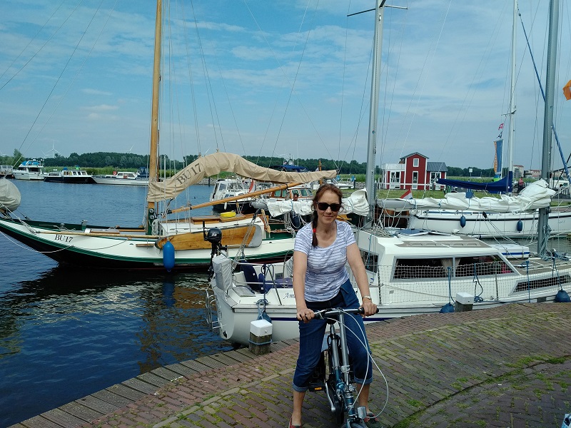 We had a settled night in Nijkerk as the wind moderated and it was brighter this morning. Max was anxious to have his morning walk and so I took him for a long one up to the edge of the shore to see the wide expanse of the Nijkerkernauw water with its resort beaches lining the far bank. He then accompanied us as we cycled along the Arkervaart which, together with its detours, then took us into Nijkerk.