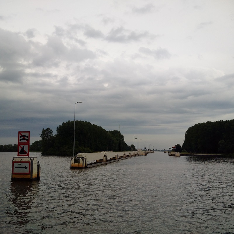 The rain had just about stopped by this time, but resumed as we cruised on past the numerous havens and marine businesses that lined the Simmerrak and then the river banks opened out for us to experience the splendid expanse of the Sneekermer and then closed in again as we cruised through the open doors of the massive Schutsluis; only closed during periods of floods and water control.