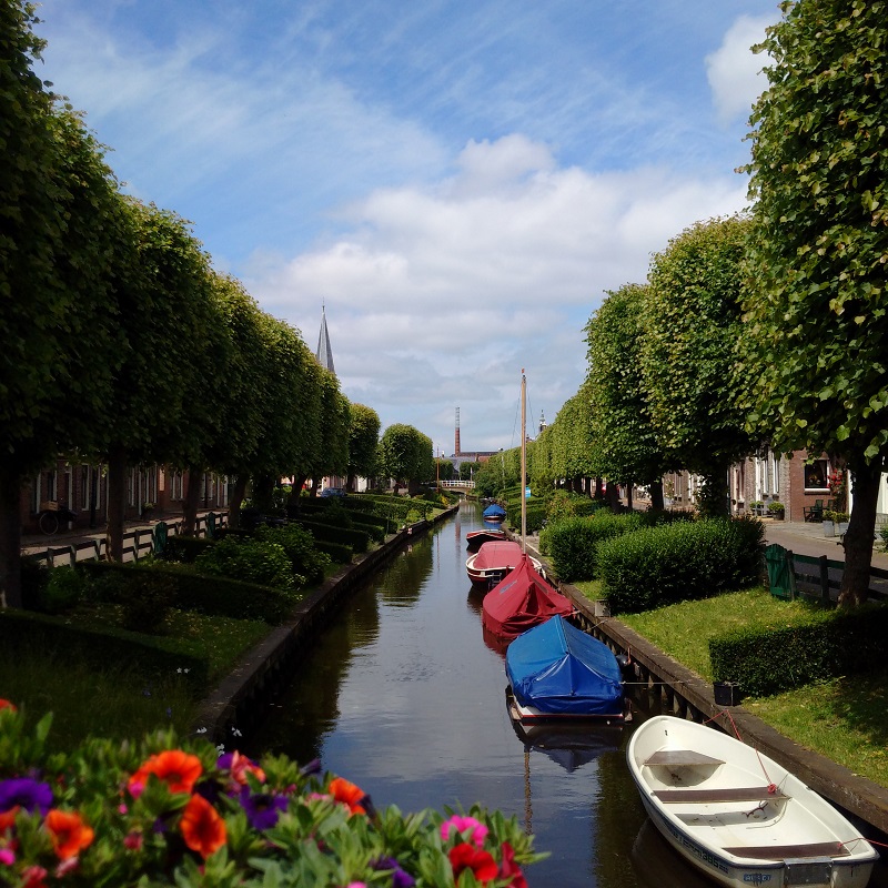 This was a fine day after a wet night for our trip on from Bolsward, intending to go to Sneek but stopping instead on the way to the friendly and intimate old town of IJlst where we walked around with Max and took him on our tender around the waterway for a better view later. No internet or power tonight and therefore no news to report
