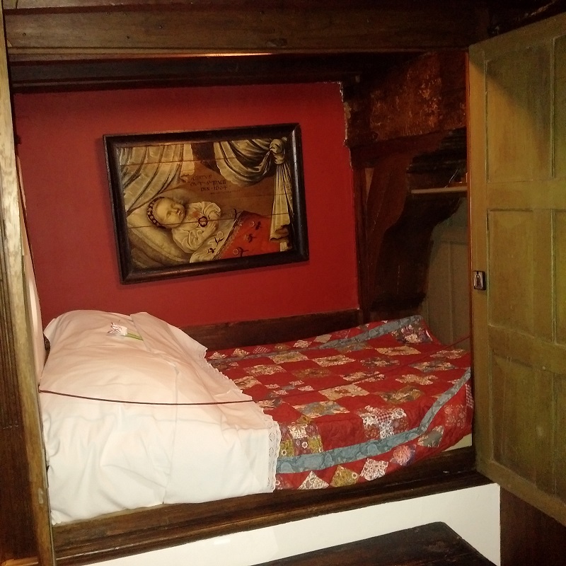 In Edam museum, based within an historic house opposite the Dam centre, we saw the amazing construction of Edam’s oldest house with its floating cellar, cosy kitchen and bedrooms and the poignant child’s room with its painting of a deceased child recalling how child mortality was a feature of those disease-ridden ages. In the Grand Church, we marvelled at the colossal size of this austere Catholic creation and local volunteers were there in numbers to show us round and display used and hand-made articles available to sell for church funds and Kathleen bought a Dutch baby’s costume for her Boat Teddy and me some DVD’s for a euro each!