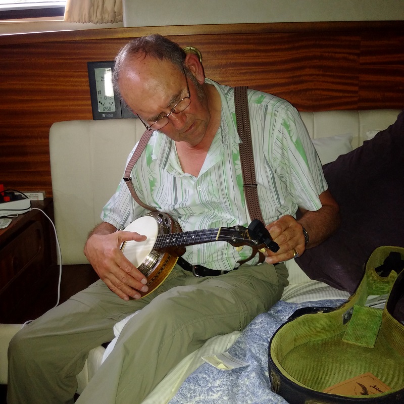 Duller, windier and cooler day, with rain forecast, and so our sailing delayed but another one enjoyed in Edam, visiting the tourist office, town hall museum and great church and then spending time resting and catching up with things as we rest in this historic place for a third day. There was even time for me to tune up my old Ukulele and play and sing a few songs..