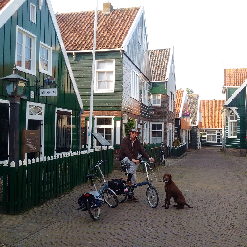 We moored up there at JH Waterland and then took our first orientational cycle rides around this historic town which is full of old buildings, harbours and features. When last I was here, we stayed at the Gemeente Haven, which was cheaper and I tied up there at first this time and took a good look at the electricity supply but it was metered and perhaps even not functioning and so we put in to JH Waterland opposite which was relatively expensive but with free electricity, water and WIFI. By this time, the day had become really hot and it was difficult to keep Max cool and out of the sun, now he was away from his Marken beaches!