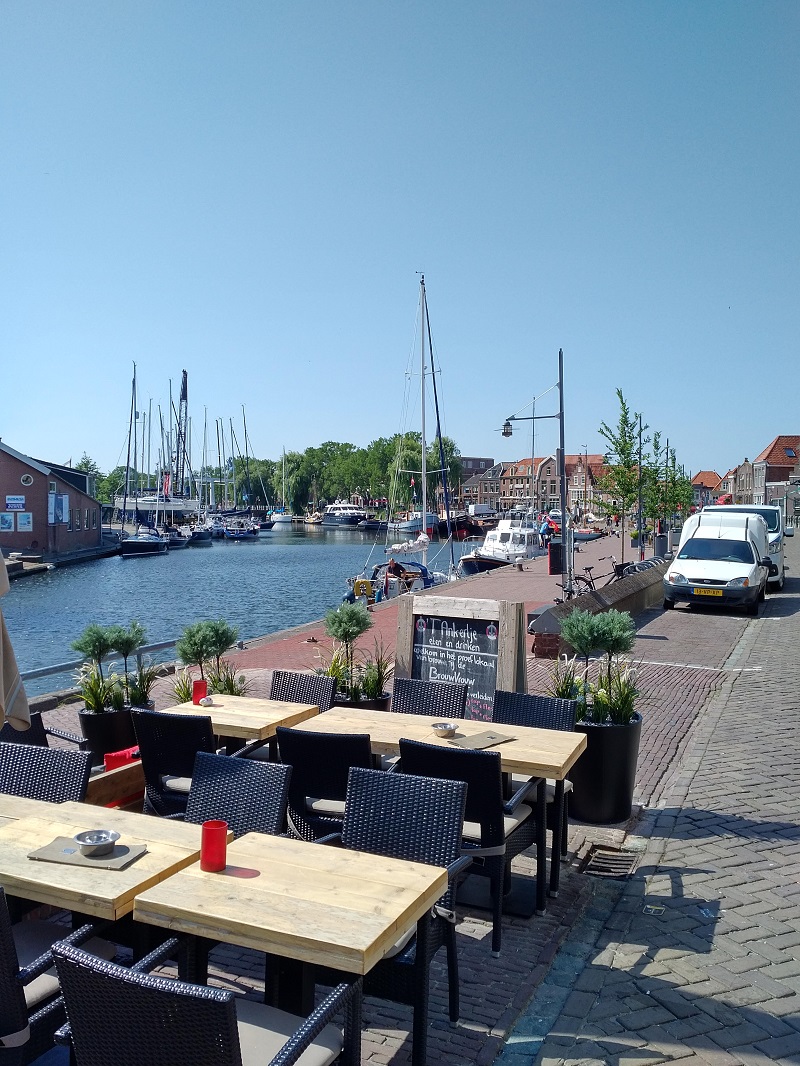 Then a visit to the excellent chandlers at the Compagnieshaven for a very good look round before coffee, apple-cake and some ice creams in the Olde Haven, where I had moored before. This is an excellent sheltered mooring in poor or windy weather but is quite uncomfortable without a breeze in hot weather