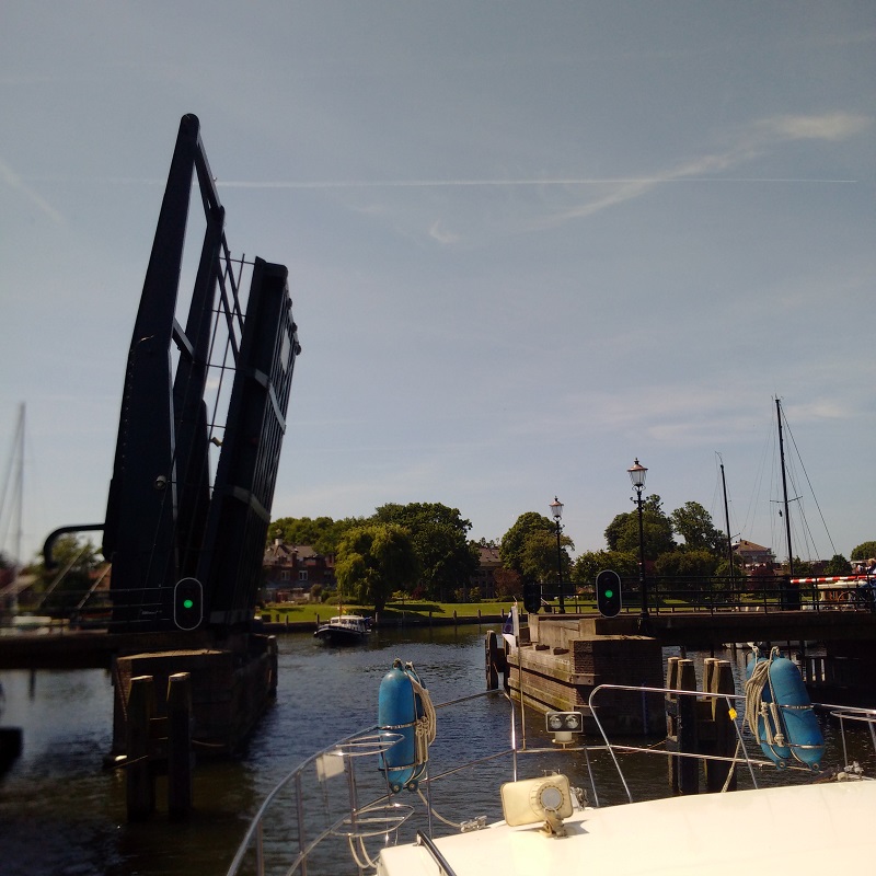 In the end, the passage was not too bad and the seas state was mostly slight but the precautions were proved necessary by the gusting of the breeze up to 16 knots over this shallow fresh water mere where the sea is often short and steep. Also you can never tell when they are going to release a 1-2 knot outflow which would have been against this wind. The entrance to Medemblik was very straightforward but I did take the precausion of calling on VHF 9 and got a good response in English. The Kwikkelsbrug closed on us but soon opened again as they no longer appear to be grouping boats together any more.