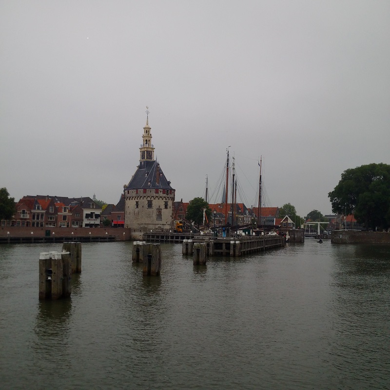 Next, after a meal, Kathleen joined me for a walk around the waterfront in this old harbour and we bought and ate some nieuwe haring and also some kibbling as well as taking away good fish for our meal later. At the fish shop, the owner had a relationship with a tame heron, who was eating the fish heads and tails whole when she fed them to him (or her)
