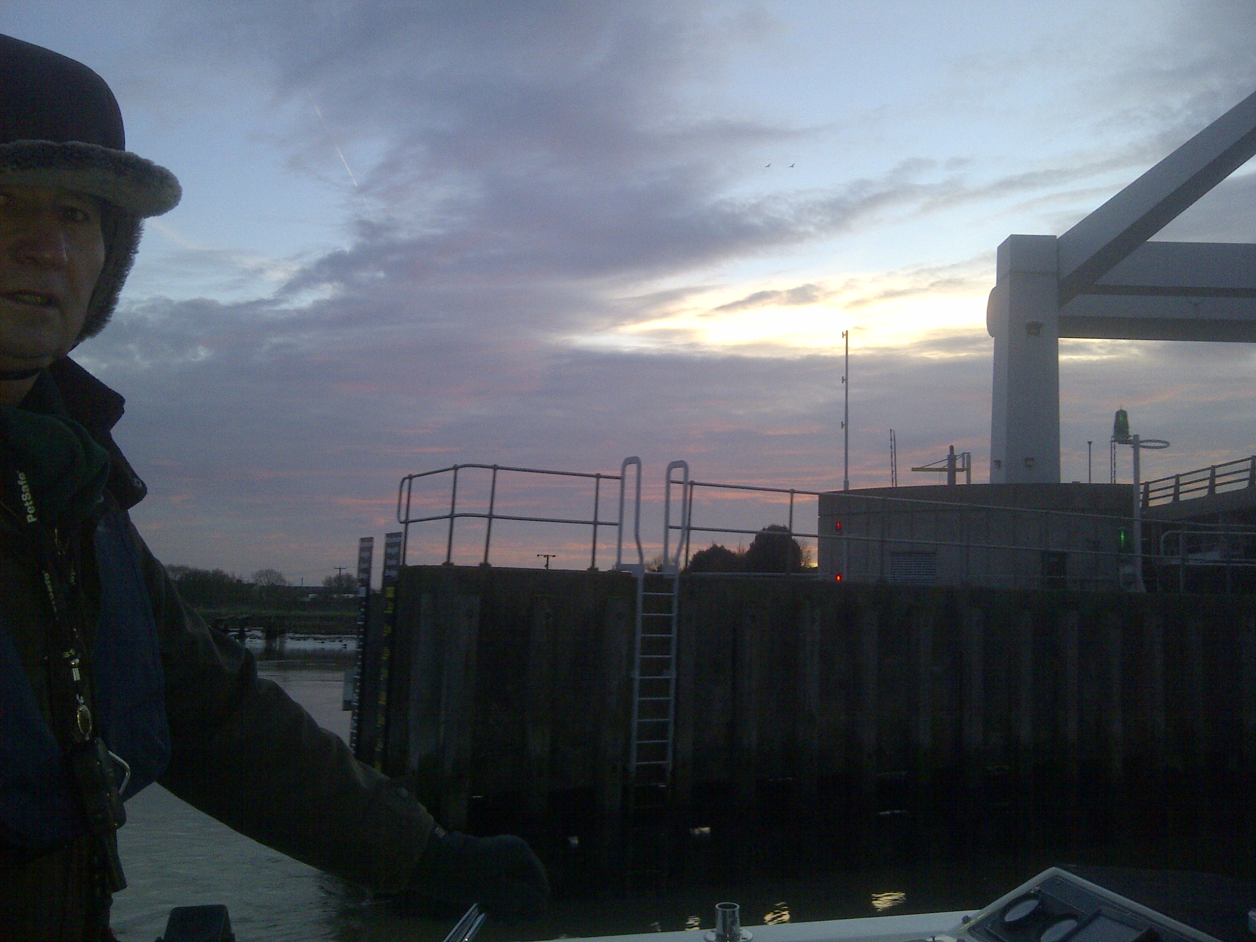 Saturday April 30th was chilly with clouds threatening, as we had to stop, moor and drop our mast and canopy at Acle Bridge to get under the 11ft headroom. The late low tide also made a transit of Great Yarmouth that evening preferable but this involved cruising under the Bure Bridges and across Breydon Water at dusk and mooring up in Reedham in the dark, When fog had added to the hazards of cruising any further