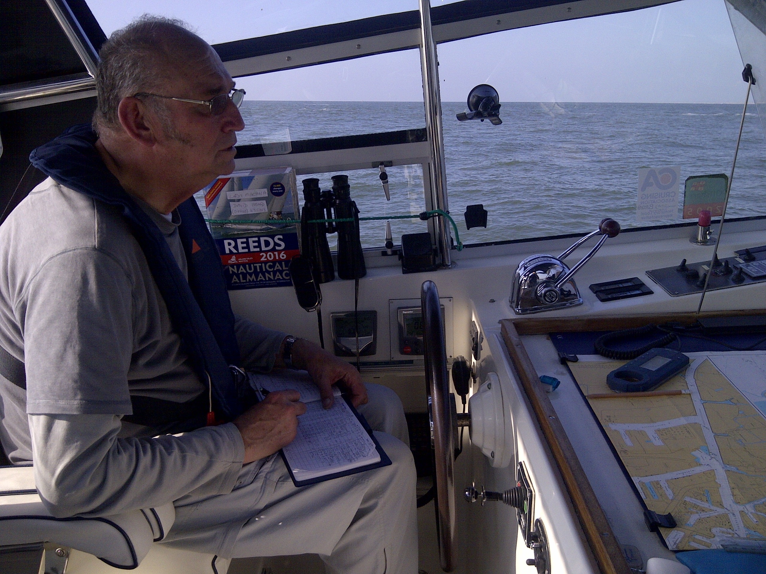 Excellent proving cruise in still airs and calm seas off Yarmouth and Lowestoft. All systems working well except my Navman 200 diesel fuel monitor/ rev counter which is duplicated my other instruments and so not important.