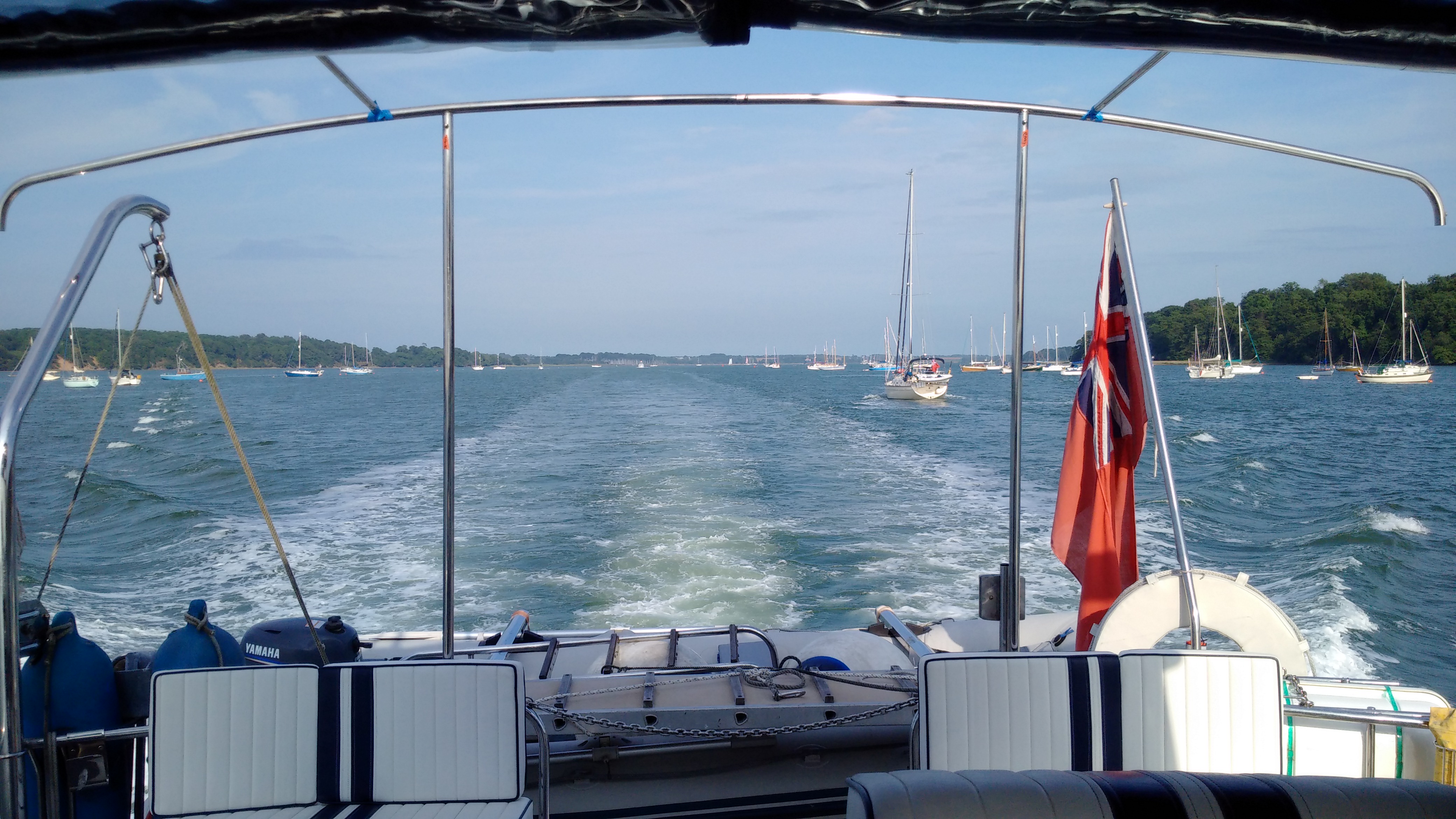 We negotiated the Tide Mill exit without difficulty and then had the problem of keeping to a poorly and sparsely-marked channel where red and orange mooring buoys competed with navigational markers to confuse even the most wary of navigators! Just like on the way in, I made at least one mistake and detour but fortunately the past tracks on my computer alerted me so that I could correct before we ventured in water that was too shallow. Being early on a making tide would have meant that we could have got off anyway, but we did not need that!