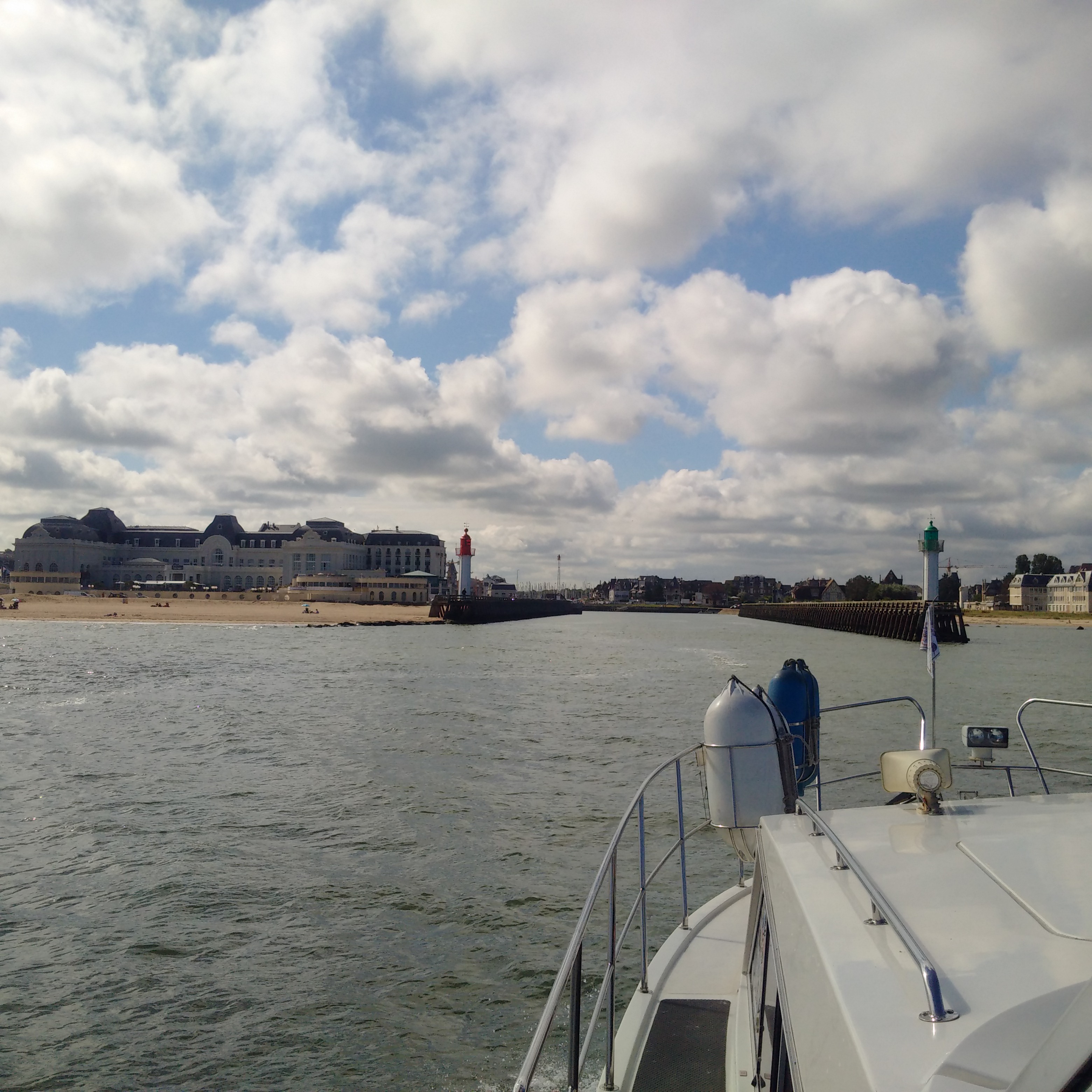 I had planned for us to make an early start and this was what exactly what we did today, starting the engines at 7.15am this morning and then leaving the moorings at Ouistrehem around 7.30am in order to be ready to enter the 8.00am lock for an exit to the sea. A good cruise from Ouistrehem to Deauville on a fine, warm and sunny day and then a good cycle ride around Deauville and Trouville before dinner on Lady Martina and then some rather last-minute cruise planning to Honfleur. The journey went well, with a good following tide and we arrived, as intended, a half hour before high water