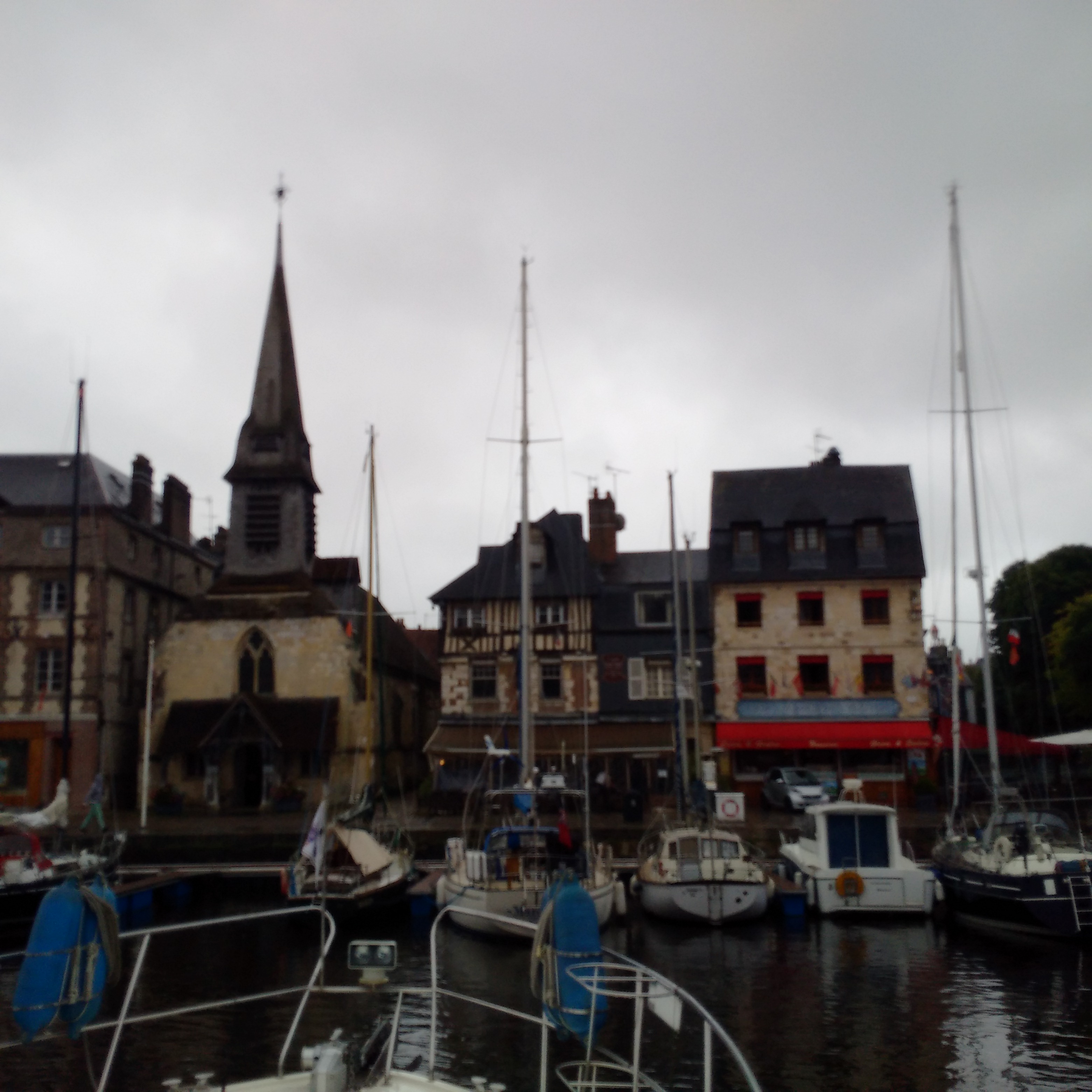 A late decision to cruise from Honfleur to Le Havre and probably not the best one but we managed it. I awoke this morning to the sight and sound of rain outside and this was to last for quite a while off and on until it started to brighten up. Our boating neighbours on both sides wanted to leave by the 10.30am bridge lift opening this morning and so I agreed to do the same thing and followed them out to try a passage today rather than tomorrow. I waited as long as I could for the calming weather to arrive but then missed the last of the free-flow through the Honfleur sea lock and had to wait a while and be locked out with two passenger vessels.