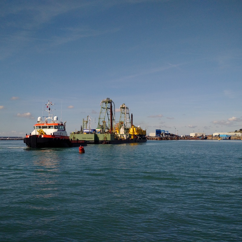 I had been planning this onward journey across the Thames Estuary and up the River Orwell to Ipswich from Ramsgate for some time and was relieved to note from the early morning marine weather forecasts that the sea was going to be as smooth as possible today. There was no time to lose as I prepared Lady Martina for the trip, setting up waypoints and courses in two GPS sets and my Vasari boat computer. I just about managed to get Lady Martina ready to leave by the time that the barrier and bridge had been lifted to allow us to leave the inner Ramsgate Marina and wait with others to leave the harbour after a huge tug and load had entered the port and was secure out of the way in the outer harbour.