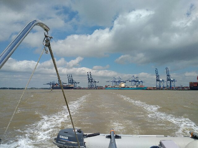 I just had to add a few waypoints to our cruising plan as the rest of the boat had been prepared for our original venture and, because the first hour or two would be spent cruising down river, we could make the rest of our preparations, eat our breakfast and stow the ropes-fenders etc. once we had cast off. I radioed the Ipswich lock-keeper and he set lock for our arrival once we were ready to leave half an hour later and we were soon cruising down the Orwell, eating toast and marmalade and drinking tea!