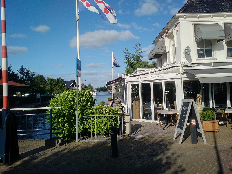 During the cycle ride, I had a chat with one of the young attractive ladies very proficiently operating the hire boats in the Waaterspoorts centre who advised me that the best restaurant in Terherne (that she would like to be taken to if invited) was De Gouden Leeuw or (in the English translation) the Golden Lion which serves fine food and is situated alongside the bridge and waterway. As our party had not eaten since breakfast, we opted for an early meal late afternoon which we all enjoyed thoroughly and its popularity was assured by it gradually filling to capacity as the evening progressed whilst the restaurant opposite remained almost empty.