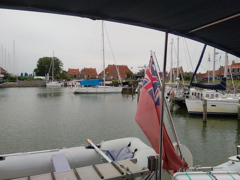 Once we had turned south, it was a slight sea, though I could see Ikon behind me riding up and down into the waves. Within an hour, we had skirted the Workum Channel buoys and were arriving on exactly the right bearing into the Hindeloopen channel. We cruised into the old Hylper Haven area, where I waited a while until we were in contact with the harbourmaster who directed to some birds alongside the lifeboats, where Ikon and ourselves could moor together.
