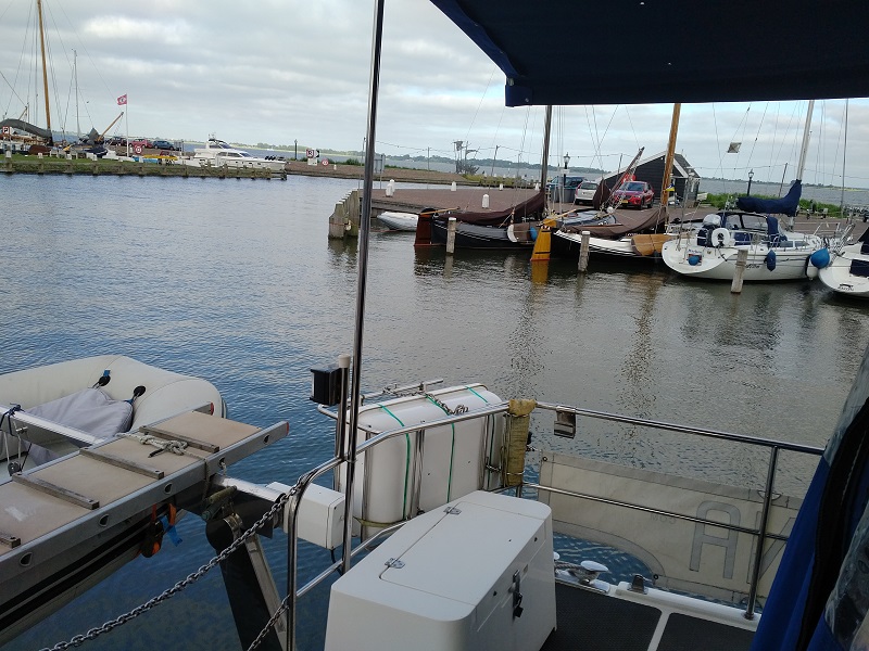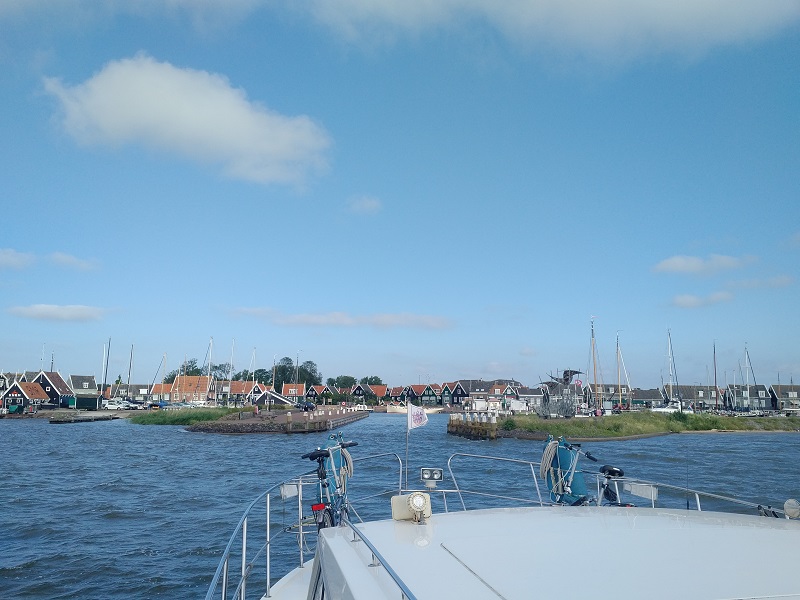 Once we entered the Markermeer, it soon became apparent that the fresh northerly breeze against the outflow from the River IJssel, would be kicking up short choppy sea in its shallow waters but at least this was on the nose of our vessels which only started rolling when we turned broadside on briefly during the passage. Even so, a few items on unprotected surfaces in both boats were casualties when we fell into the trap of not treating these inland lakes as the seas they really are.