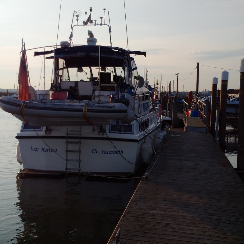 After some brief sea trials, our first proper sea trip of a season much-disrupted by the coronavirus 19 lockdown. Proceeding well on a fine and murky day heading out from Lowestoft Harbour through the Stanford channel and pass the East Barnard cardinal marker before cruising the remaining five nautical miles or so to the Southwold harbour piers. Then calling for entry instructions after which we moored at the pontoon adjacent to the harbourmaster's office