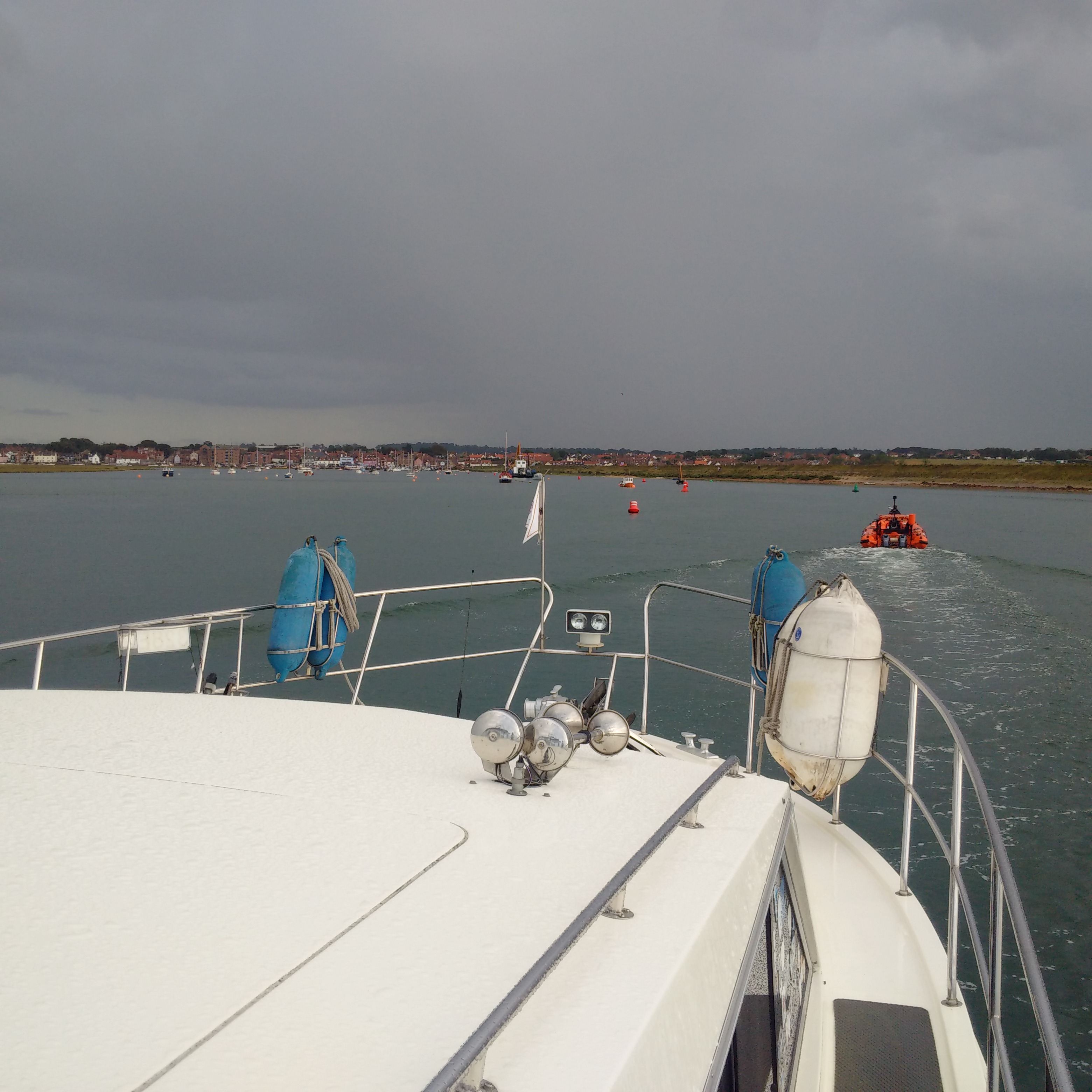As we were off Blakeney Point, we heard from Wells Harbour VHF traffic that a flotilla of sailing yachts from the Royal Harwich Yacht Club were ahead of us a little early on the tide and preoccupied the harbour staff until then. We then made our presence known on VHF and the harbour launch was ready for us at the entrance for pilotage and they had kept an alongside berth for us in the favourable spot near to the west of the pontoon.