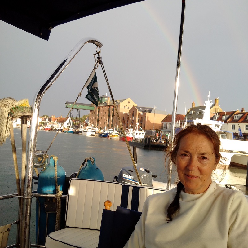 Cruising from Lowestoft to Wells with a perfectly-timed passage to have wind with the following Spring Tide, then slightly delayed by an earlier-than-predicted tidal flow change but we still arrived at Wells Harbour around an hour before high water. Then shown in behind Robert Smith in the harbour launch as the heavens opened with thundery rain. We tied up at the new pontoons with electricity and water readily available
